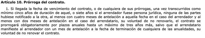 If you do not comply with this notice, the rental contract can be extended up to 3 more years, just as collecting article 10 of the Lau. Once it is within this period, only tenant has the power to decide if AO is renewed until the maximum period is exhausted, as long as “manifests the lessor with a month in advance of the end date of any of the annuities.”