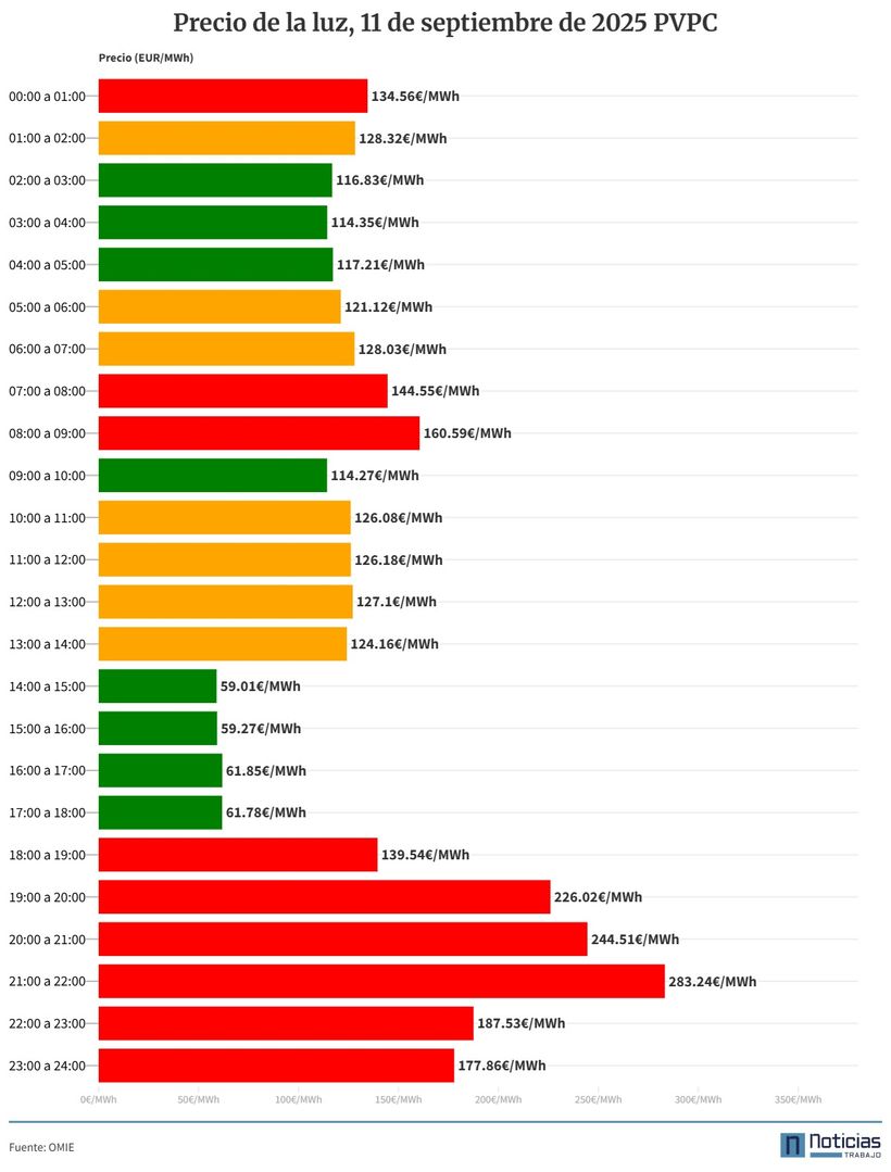 The price of light today Friday, September 12, 2025: the cheapest hours and faces within the PVPC